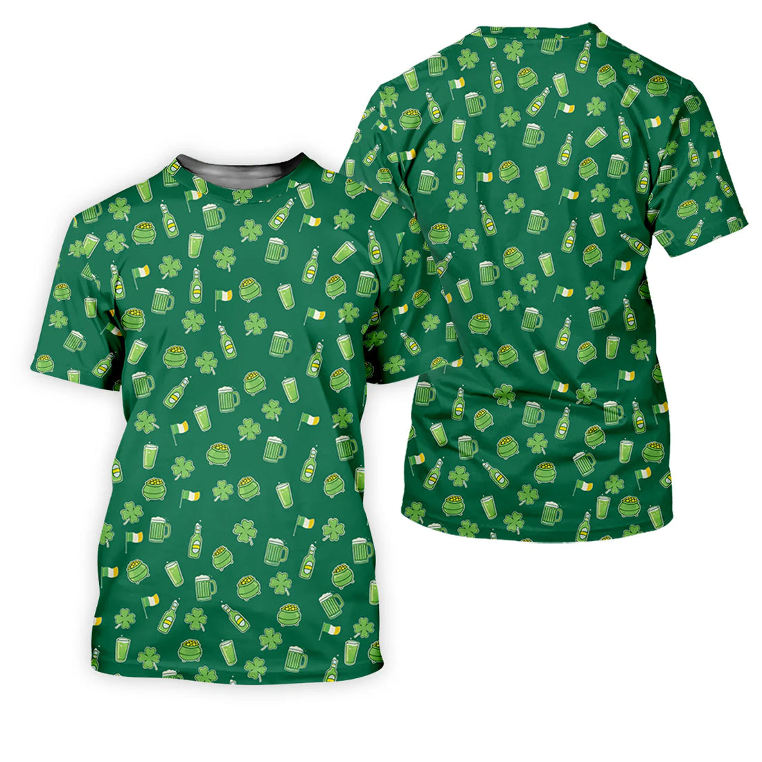 Men's St Patrick's Day Beer Four Leaf Clovers Gold Pots Green Golf Shirt