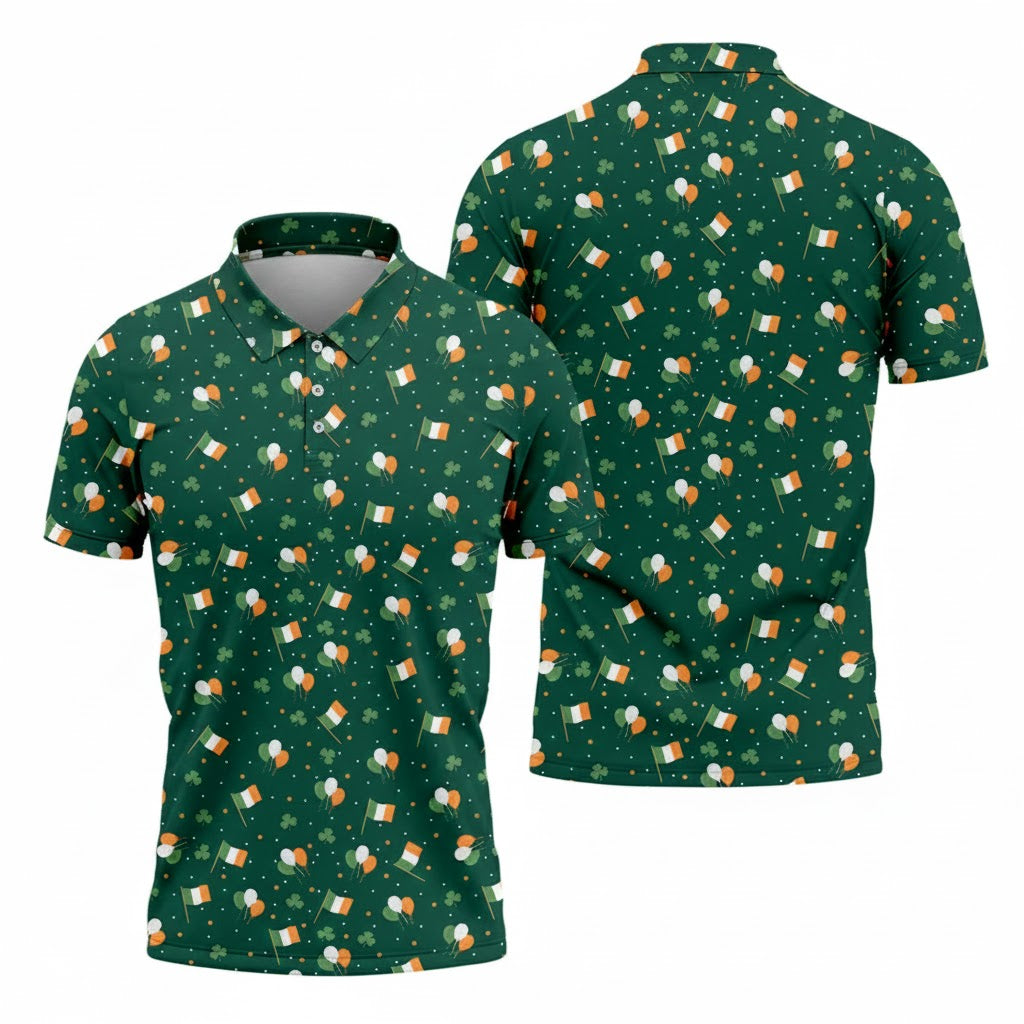 Men's Green White Orange Confetti Balloons Irish Flag St Patrick's Day Golf Shirt