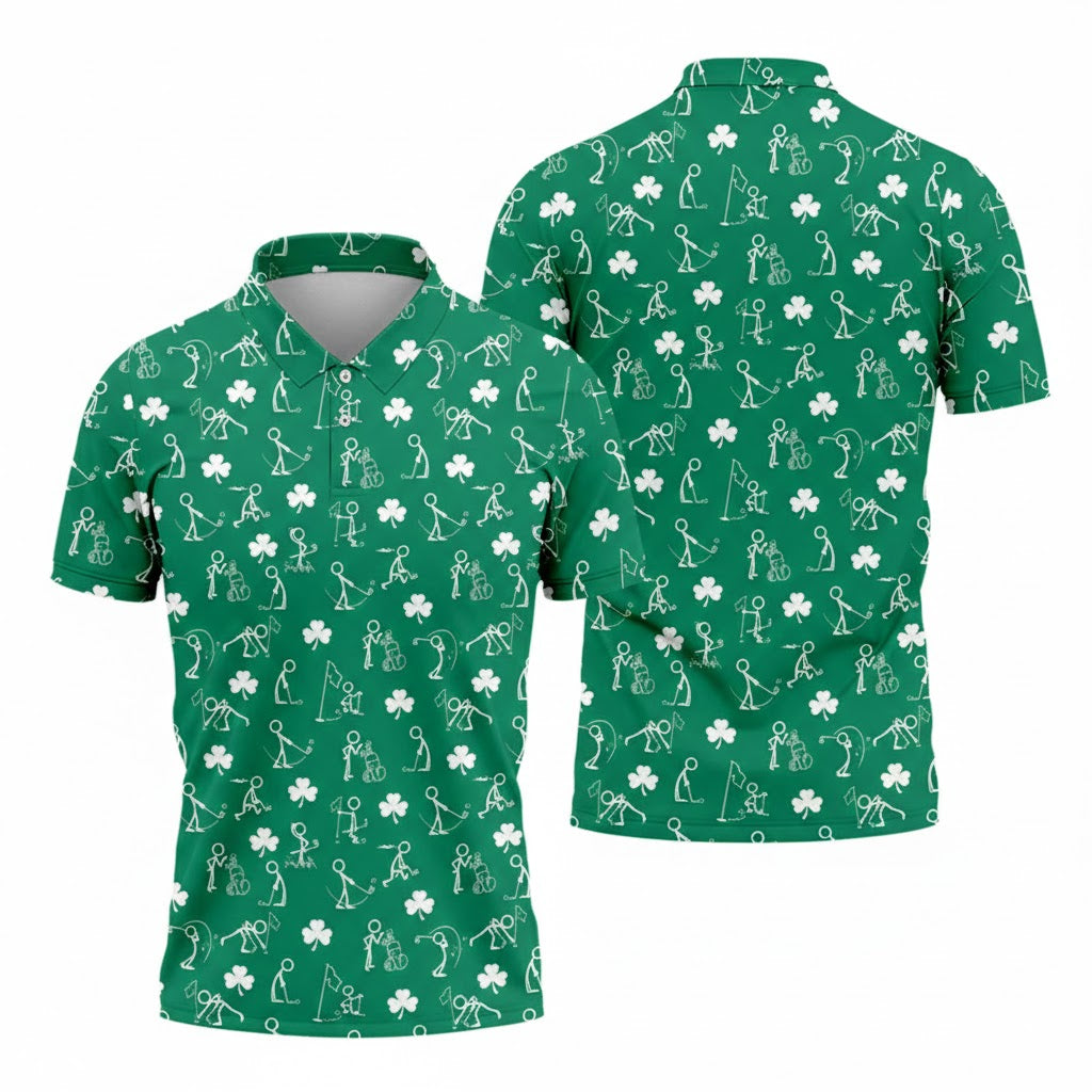 Stick Figure Golf Pose Shirt, St. Patrick's Day Shamrock Green Top, Golf Shirts For Men