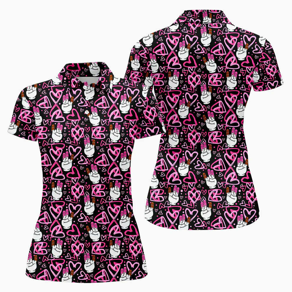 Chocolate Fingers Heart Pattern Women’s Golf Polo, Valentine Golf Gift