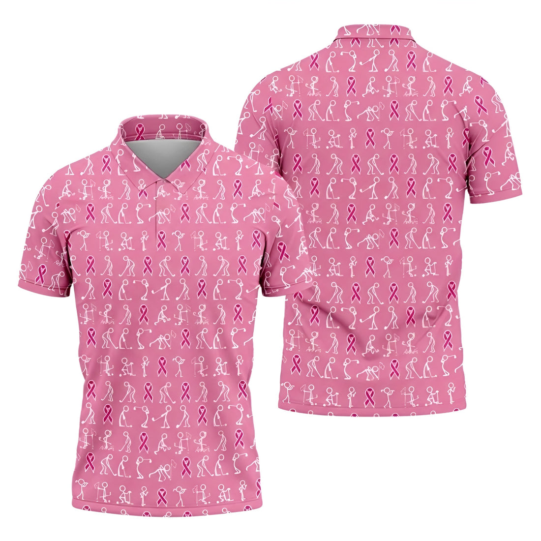 Funny Stick Figure Pink Golf Polo Shirt, Breast Cancer Awareness Shirt for Men, Valentine’s Golf Gift