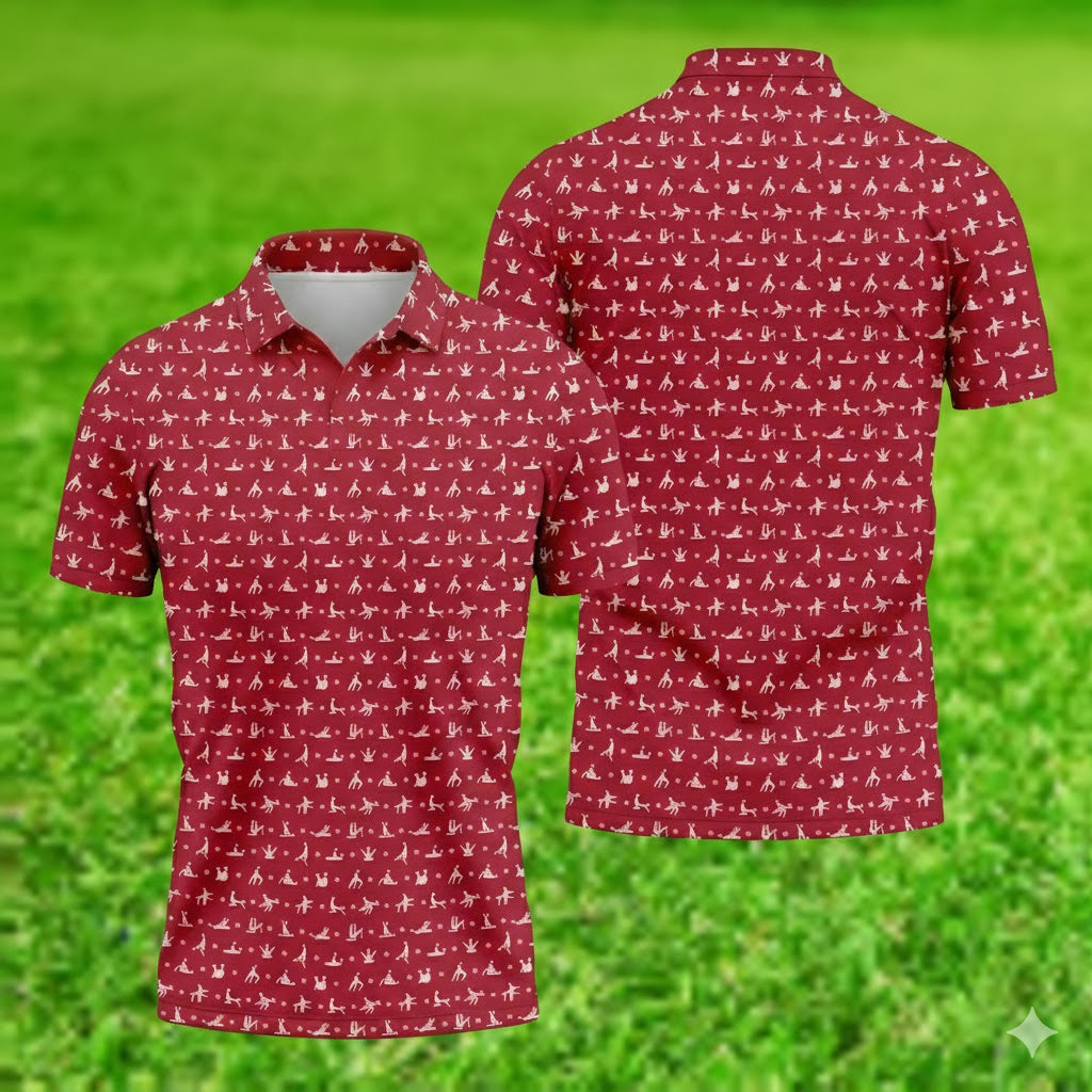Funny Naughty Couple Stick Figure Red Golf Polo Shirt, Valentine’s Golf Gift for Men