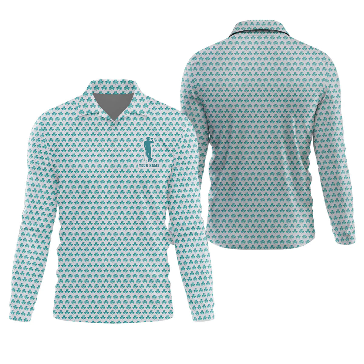 Personalized St Patrick's Day Shamrock Golf And Beer Blue And White Golf Shirt, Golf Shirts For Men