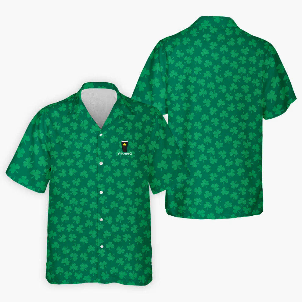 Vitamin G Shamrock Pattern Golf And Beer Green Golf Shirt, St Patrick's Day Golf Shirt